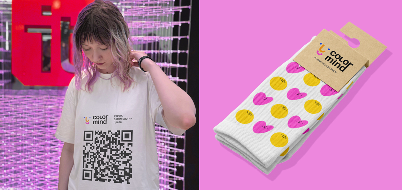 Яркие цвета привлекают внимание и намекают на энергичность и вовлечённость. «Улыбка» внизу — это мгновенно узнаваемый символ счастья и позитива